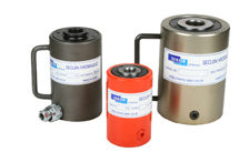 용도 : 실린더의 플런져에 센터홀이 있어 이 가운데로 로드를 집어넣어 고정하고 플런져가 전진하는 것과 동시에 로드가 작동하여 밀고 또는 당기는 작업을 할 수 있습니다. 유압기어 풀러 교량로프인장, 유압펀칭 콘크리샤 고정볼트 고정용 등 각종기계의 지그장치로 사용됩니다.